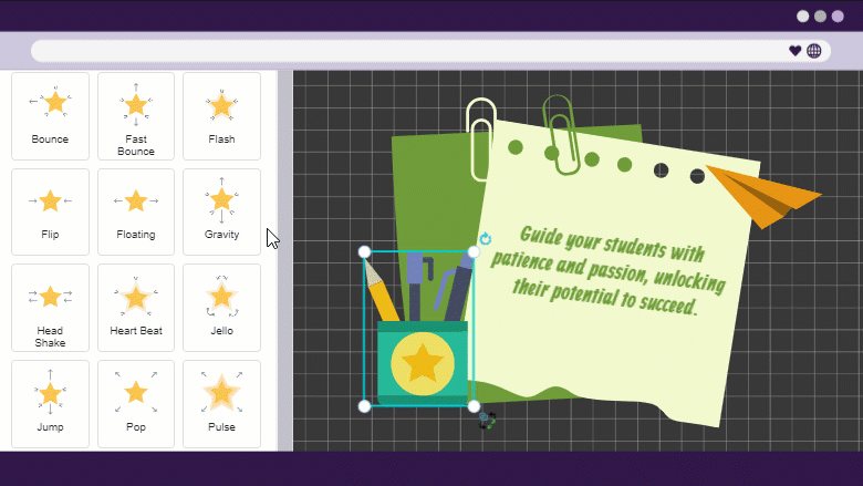Animate text, shapes, and objects effortlessly with our user-friendly Simple Animation feature. Choose from a range of pre-defined animation presets to add captivating motion to your creations.